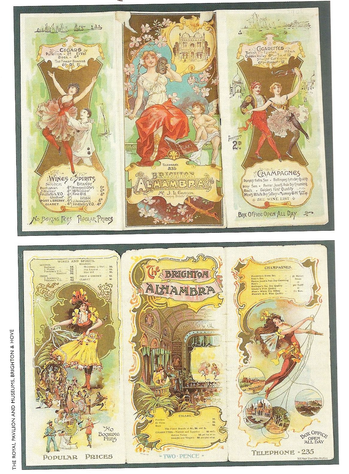 Backstage Brighton also covers smaller theatres, no longer in use. The Alhambra on King’s Road (facing the seafront) was demolished to make way for the popular, if unsightly, Brighton Centre in the 1960s. In its heyday, the turn of the last century, the Alhambra was a music hall venue, attracting 250,000 visitors each year.