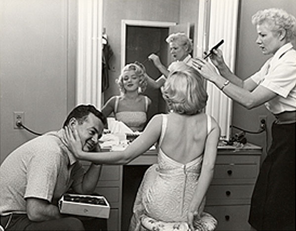 This period also yielded two of the loveliest portraits of Marilyn, lying on a rug. In one shot, she faces the camera with heavy-lidded eyes, and a finger dangling from her mouth. In another shot, she rests her hand on her head and looks up in angst. In these pictures, we are shown not a calendar cutie, but an alluring siren, and they were sold to magazines such as Esquire. In 1952, Marilyn vamped it up again for Florea. In one session she wore a black camisole. These glamour shots have since been reproduced countless times, in pop art and posters. These images are familiar to us all, but only die-hard fans can identify the originals as Florea’s work.