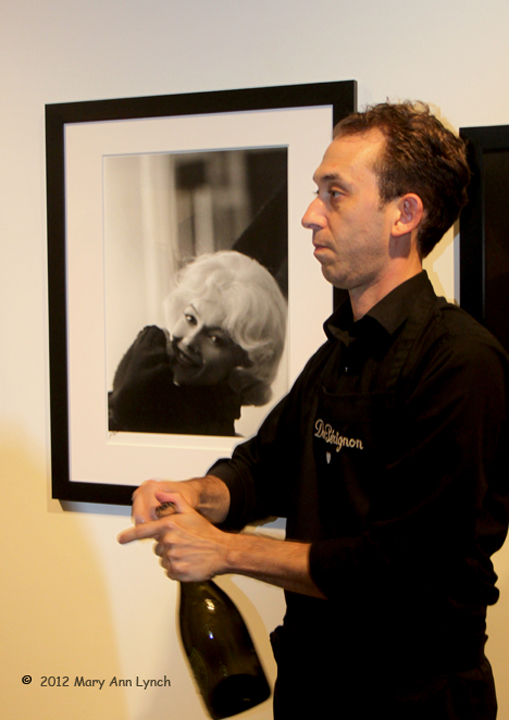 The wall photograph is the first important portrait of Marilyn Schiller ever made, while photographing her on and off the set of “Let’s Make Love” in 1960. It is the cover of the Nan Talese/Doubleday compact edition of Schiller’s memoir, “Marilyn & Me.” Each chapter opens with a small black and white photograph. It makes for an intimate read and at the $20 price point can be had by all. Those who knew Marilyn to be quite the reader can imagine her curled up on the couch looking at it herself. And she would have appreciated having “Dom” served at the reception.