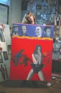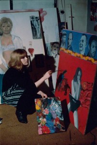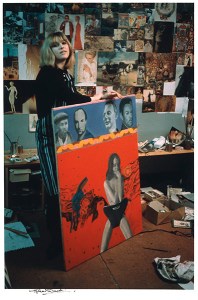 Unfortunately, the painting was lost after Boty’s tragic death in 1966, and only a few photos exist of the work-in-progress. She is currently the subject of a retrospective, Colour Her Gone, at Wolverhampton Art Gallery.