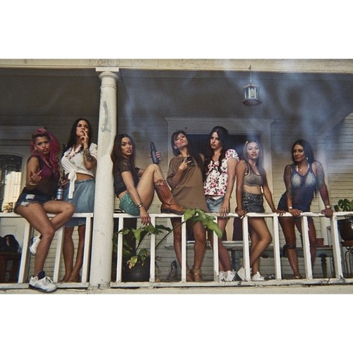 The couple attend a Day of the Dead party in painted masks. Later, Eve and the ‘Summertime Girls’ (a nod to her hit single, ‘Summertime Sadness’) braid each other’s hair, while the boys play with guns and cars. Her lower belly is tattooed with the legend, “Trust no bitch.” Adam has joined the gang (‘the Tweekers’), who seem to be rehearsing a heist. Lana was criticised on gossip blog Jezebel for appropriating ‘chola’, or Hispanic gang culture. But without their influence, Tropico would only capture a homogenised ideal which has marginalised so many Americans in the past.