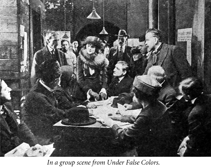 Nonetheless, she would work with both Chautard and Warde again in Under False Colors (1917), her last film with Thanhouser before its closure, and one that was directly involved with dramatic events currently unfolding in Europe. Warde played an American millionaire who rescues ‘Vera’ (Eagels), a Polish refugee, on the eve of Russia’s March Revolution. Unbeknown to her benefactor, she is really a Russian countess.
