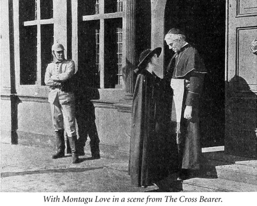 Her next film role was in The Cross Bearer (1918), the tale of one of World War I’s real-life heroes, Cardinal Mercier (Montagu Love), who protected his church and parishioners when the German army invaded the Belgian town of Louvain. Jeanne played the Cardinal’s young ward, and fiancée of a Belgian officer (Anthony Merlo.)