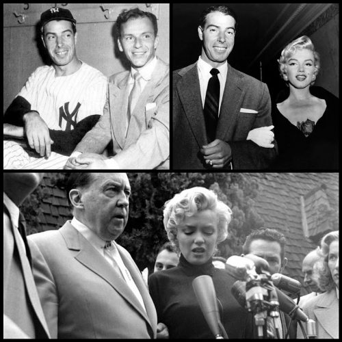 Joe DiMaggio and Frank Sinatra, and Marilyn with lawyer Jerry Giesler
