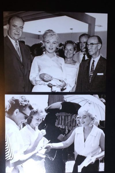 “Although Marilyn was a down-to-earth woman,” Michelle writes, “she did still enjoy the finer things in life.” Many of Marilyn’s old haunts no longer exist, but some survived: including the former Villa Nova restaurant on Sunset Boulevard, now known as the Rainbow Bar and Grill, where she had her first date with Joe DiMaggio. Olvera Street still boasts an array of Mexican market stalls where Marilyn bought many items over the years, including Christmas decorations for the tree given to her by DiMaggio in 1961. The Los Angeles Farmers Market boasts multiple connections to Marilyn: she was crowned Miss Cheesecake there in 1951, after winning a readers’ poll from Stars and Stripes magazine. On June 1st, 1962 – her 36th birthday – a cake from Farmers Market was delivered to the studio where she was filming Something’s Got to Give. (Poignantly, it would also be her last day on the set before illness led to her being fired.)