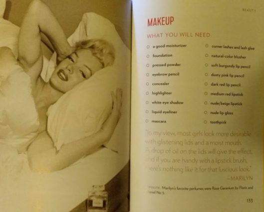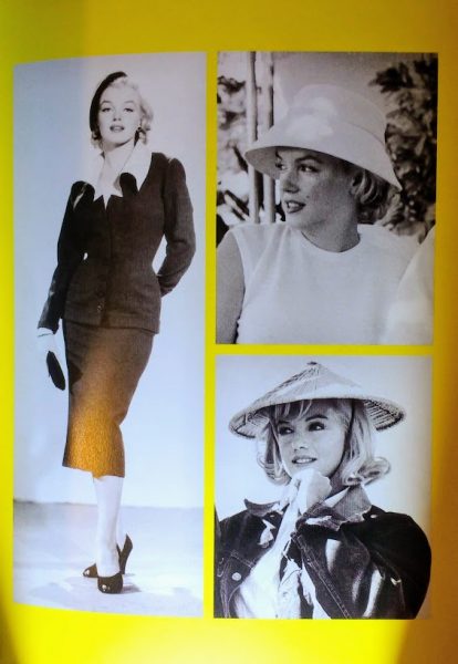 Marilyn’s short, wavy hairstyles became her trademark, although she enjoyed letting her hair grow longer when she wasn’t working. Contrary to rumour, she was never a U.S. size 16 though her weight fluctuated over the years, and by 1962 she had slimmed down to 120 pounds. She had a healthy appetite and, of course, loved champagne (Dom Pérignon 1953, to be exact.) While not a sportswoman as such, she was ahead of her time in her devotion to exercise, from jogging to yoga. In later years she enjoyed regular massages, which helped to ease her insomnia. The ‘beauty’ chapter ends with two makeovers demonstrated by lookalike Suzie Kennedy.