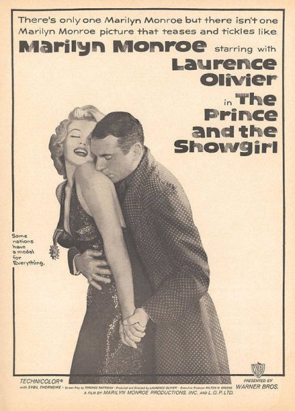 Juroe returned to the United States with Jacobs and, over the next few months, helped to promote The Prince and the Showgirl in advance of its release in mid-1957. “The most traumatic happening during that time was when Warners decided they needed a specially posed photo of Monroe and Olivier for the advertising campaign,” he remembered. “I had to fly to London and accompany a very reluctant Larry to New York. We left the hotel to go to Greene’s studio where Olivier put on his costume, a polka-dotted silk robe. Madame arrived and after the briefest of greetings the session started. Two rolls of film later – only some twenty shots – our diva said, ‘That’s it!’ and left … One of those few frames fortunately was used for the campaign, but it was all somewhat in vain because the reviews and lack of box office success brought my work on the film to an end.”