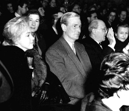During her remaining time in England, Marilyn saw a rough cut of The Sleeping Prince, and attended a fractious debate at the Royal Court Theatre, where her bemused husband joined a panel alongside fellow dramatist Wolf Mankowitz as he verbally sparred with a younger rival, Colin Wilson. On November 20, Marilyn personally thanked all the Parkside House staff and said her goodbyes to the Oliviers at London Airport. In contrast to her arrival four months earlier, it was a subdued occasion, with only a handful of reporters present. Vivien Leigh, still recovering from a miscarriage, gamely supported her weary husband in this final public display.