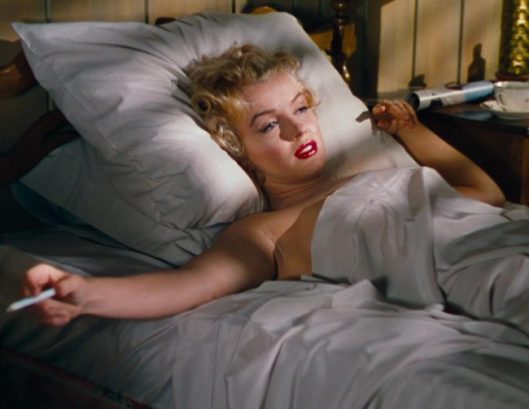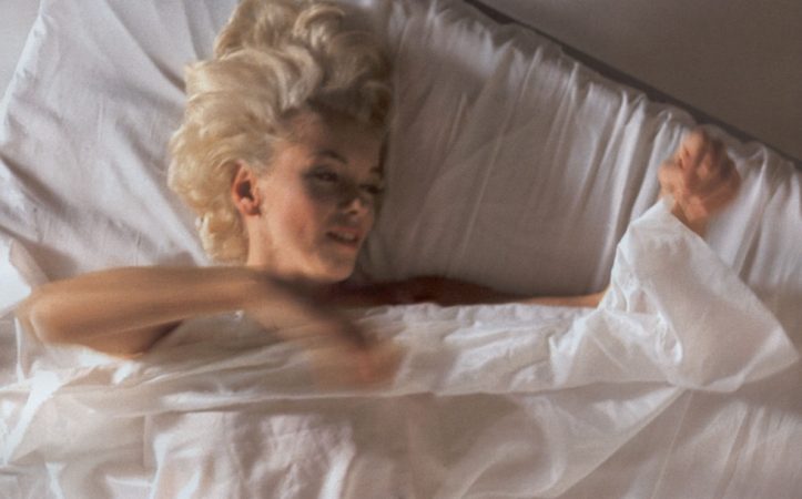 The concept, though simple, was not new to Marilyn. She was filmed nude under silk sheets for her first scene in Niagara, and had then posed in the same style for photographer Bob Beerman in July 1953. In the layout for Modern Screen magazine – shot during her earlier tenancy at North Doheny Drive – a bottle of Chanel No. 5 sat prominently on Monroe’s bedside cabinet, in a sly nod to her famous comment on what she wore to bed. She slipped between the sheets again that September for another Look magazine photographer, Milton Greene. She filmed another bedroom scene for Bus Stop (1956); and in 1960 she revisited the idea with Magnum photographer Eve Arnold, echoing a scene in her final movie, The Misfits.