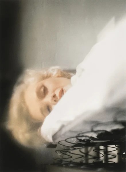 “She grew more and more enthusiastic,” he wrote, “almost as if she believed she were giving birth to them on the spot, by her effort and discovery.” She zoomed in on a few favourites, viewing them over and over again until she settled on “what has become the horizontal classic, the quintessential Marilyn Monroe image of ‘the girl’ clutching the pillow. Once Marilyn had found or ‘created this image’ she sat and stared at it at length. It was as if she wanted to see what her invention of Marilyn Monroe had now become, and what it could become in the future. It was then that she said, ‘I like this girl because she’s the kind of woman that every man would want to be in there with: the kind of girl that a truck driver would like to be in that bed with.’”