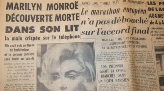 On Monday, August 6, Kirkland left work early and was walking back to his hotel when a large black headline on a newsstand caught his eye: ‘MARILYN EST MORTE!’ He was aghast. “What did it mean?” he wondered. “My Marilyn was dead? Could it have been a different Marilyn?” As he walked further, he passed more newsstands bearing similar headlines, and finally a picture. When he reached the hotel, the man at the front desk confirmed everything. “It was then that these strange words rang through my head,” Kirkland recalled. “‘No Marilyn,’ I thought, ‘we won’t have that other shoot together … we will not …’”