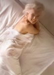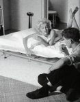 After taking a short break to check out the bedroom setup, he found Marilyn chatting with Jack Hamilton and her makeup and wardrobe ladies. “They were exchanging stories of the past, from long before my time. Everything seemed relaxed again so I asked if we could move over to the bed and resume shooting. I had previously suggested to Marilyn that, since we were working on a picture for Look’s 25th anniversary issue, she might like to show how she’d like to be remembered twenty-five years into the future … As I reminded Marilyn of our ‘statement picture,’ she nodded with a smile and headed back to the dressing room.”
