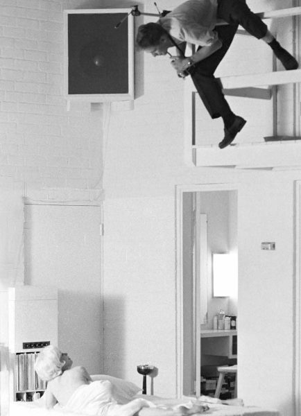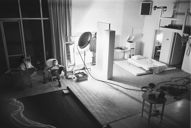 In 1965 he went to Paris again, working with Audrey Hepburn and Peter O’Toole on the set of How to Steal a Million. During that trip he began a lifelong romance with Françoise Kemmel-Coulter, the daughter of Hepburn’s publicist. “He was so jet-lagged, he slept with his arms behind his neck and his legs propped on a desk,” Françoise said of their first encounter. “It gave me a chance to just look at him for twenty minutes without him even knowing.” He returned to the U.S. with Brigitte Bardot, promoting Viva Maria, and also photographed Julie Andrews for The Sound of Music. Then in 1968, he was reunited with a former colleague at Look, photographer turned filmmaker Stanley Kubrick, on the set of 2001: A Space Odyssey.