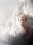 “When she came back she was wearing a white robe which she immediately took off, as she laid down on the bed and slipped under the silk sheet. I stole little glimpses of her backside and breasts as she moved. She may have intended for me to catch those little glimpses. This was, of course, very exciting for me in my young man way. I mean, here I was with Marilyn Monroe in front of me. She was within arm’s reach, twisting and turning under that sheet, which was semi-transparent. We started by doing head and shoulder close-ups, then after a roll or two we stopped … She leaned towards me and drank a few sips of champagne, and I did as well. Then, to my great surprise, she suddenly sat up in bed, covered her breasts and announced to all, ‘I think I should be alone with this boy. I find it usually works better this way!’ Her words were firm yet bewitching. An instant later the door slammed shut. Now it was just the two of us … I wasn’t sure exactly what was expected of me. What was I supposed to do? I retreated behind my camera and started shooting again.”