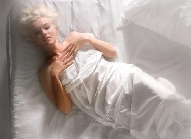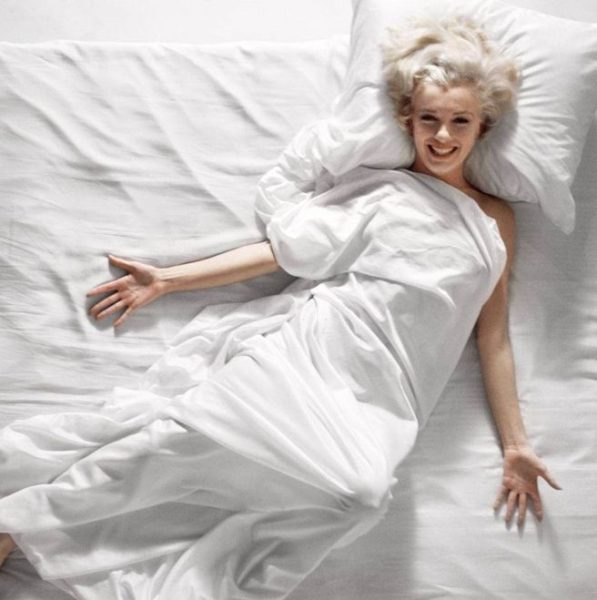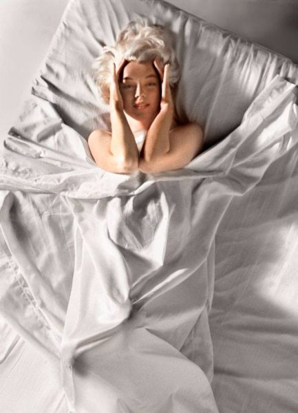 “My greatest difficulty during that meeting was telling Marilyn exactly how I wanted to photograph her,” he continued. “As I’d looked into her eyes, which seemed especially warm and virginal to me that evening, I felt as though my two older colleagues were sitting there in judgement, like two ancient schoolmasters, as I tried to gently seduce her into doing the picture I had envisioned … But then Marilyn, with her sweet intuitiveness, made it easy. She simply said, ‘Okay, I know what we need. We need a bed with white silk sheets and nothing else, and it will work. But,’ she added, ‘the sheets must be silk.’ She had done the biggest part of my job for me; understood my ideas and articulated them better than I had been able to – bless her.”