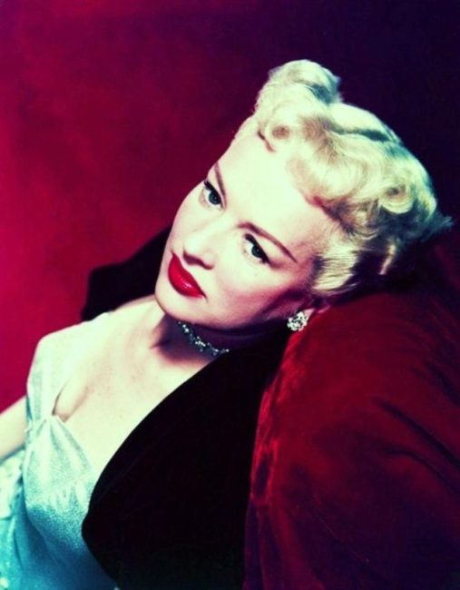 Now a freelancer, Grable returned to 20th Century-Fox for How to Be Very, Very Popular (1955), based on She Loves Me Not, a novel turned play – and, in 1943, a Miriam Hopkins movie – whereon a nightclub performer hides out in a men’s college dorm after witnessing a murder. A year before, veteran screenwriter Nunnally Johnson (who also penned How to Marry a Millionaire) had signed a new writer-producer-director contract. One of his first duties was to find a project to reunite Monroe with her Blondes co-star, Jane Russell. When Marilyn refused, Zanuck suspended her and nabbed Betty instead, with another ‘replacement blonde,’ newcomer Sheree North, as her sidekick. “As it turned out, North walked off with the movie after doing ‘Shake, Rattle and Roll,’” Dick writes. “Very few movie careers end in a blaze of glory, and Betty’s was no exception.” She spent the next two decades performing in musical theatre and cabaret, until her death in 1973.
