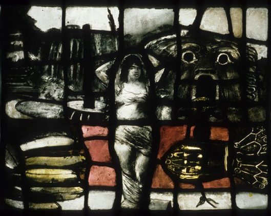 ‘The statue is from a stained-glass window from the Royal College of Art,’ Granlund says. ‘She wasn’t able to enter the painting program there as a woman. So she entered the stained-glass program. So the painting speaks to female empowerment.’