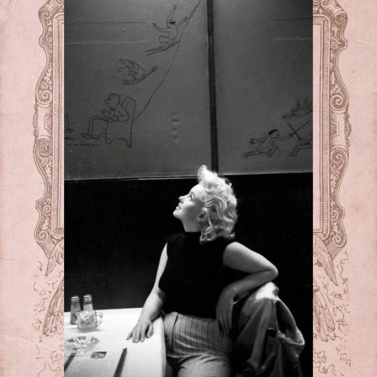 On what would be Marilyn Monroe’s 97th birthday, here’s a gift from me to all her fans. (The photo above – shot by Ed Feingersh in March 1955 – shows Marilyn looking up at a James Thurber drawing on the wall of Costello’s Restaurant, an Irish bar on Third Avenue in Manhattan, beloved by the literati.)